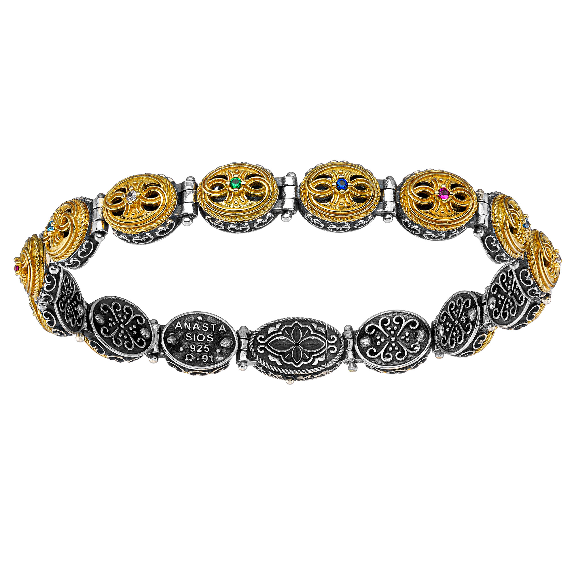 Silver bracelet 925 with dumblet gilding k24 and synthetic stones