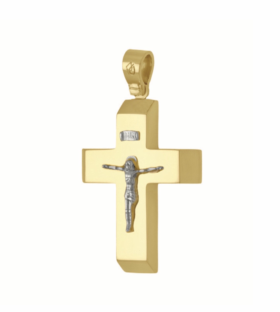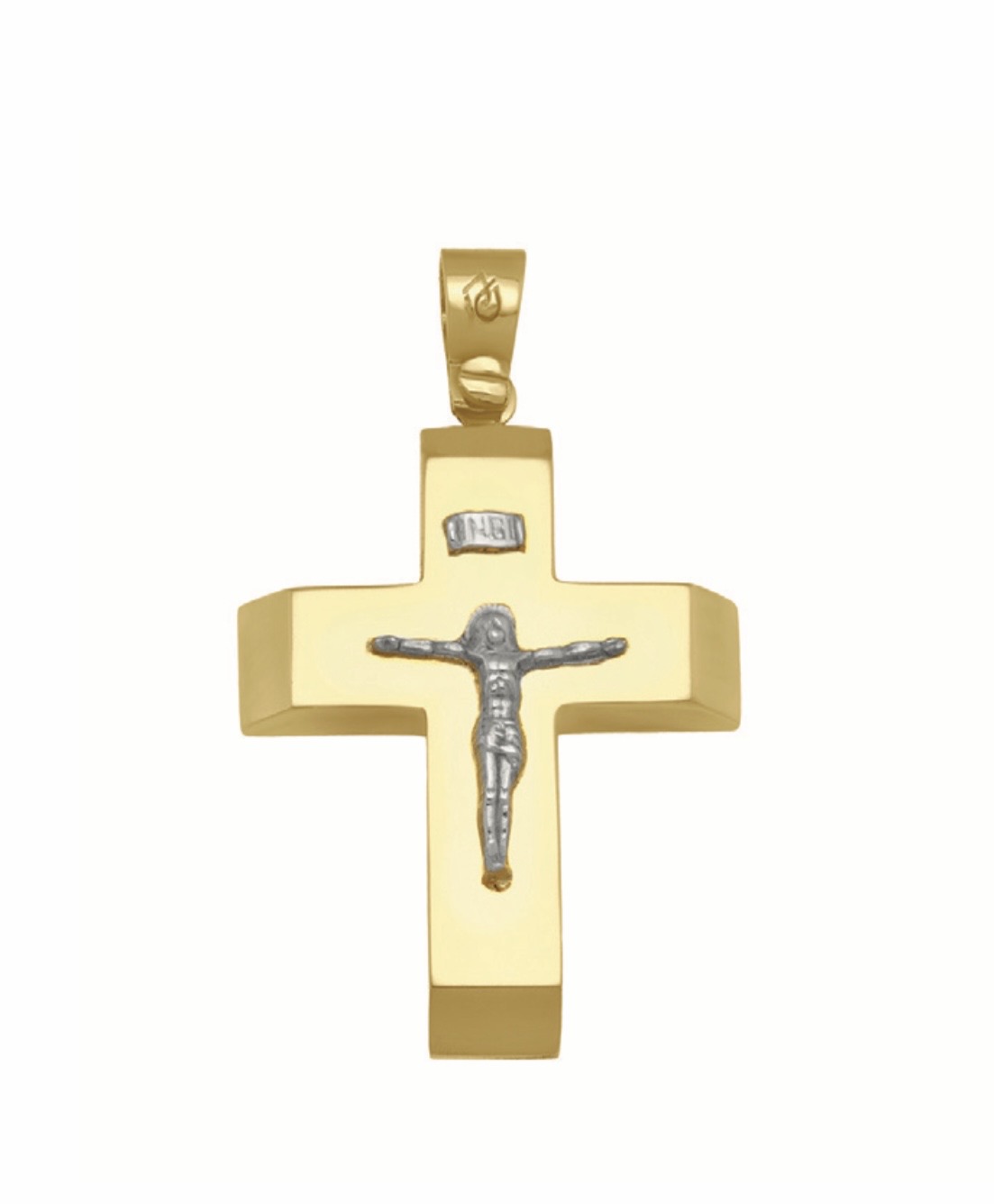 Σταυρός χρυσός 14 καρατίων με λουστρέ φινίρισμα και εσταυρωμένο