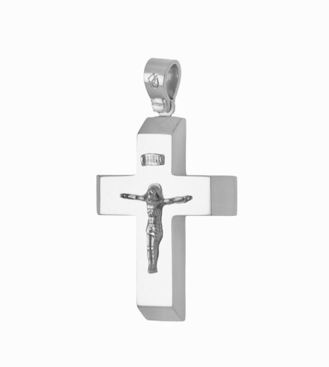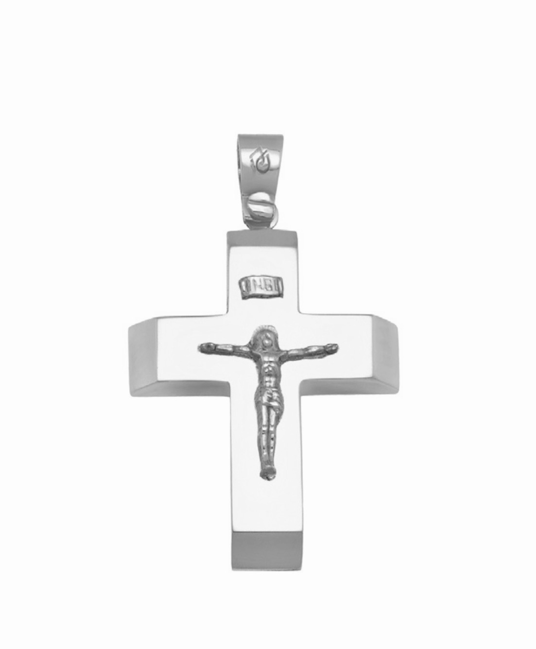 Σταυρός λευκόχρυσος 14 καρατίων με λουστρέ φινίρισμα και εσταυρωμένο