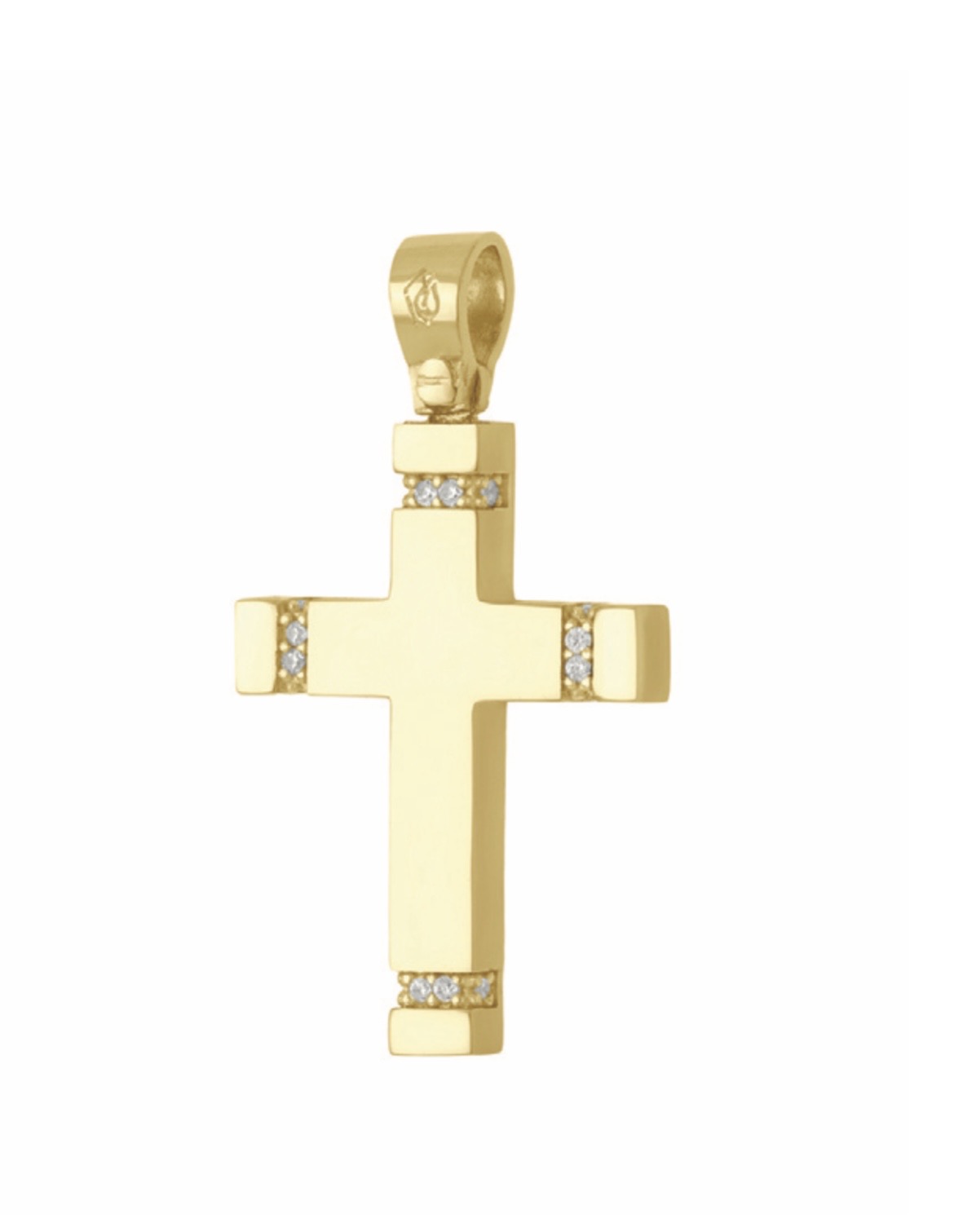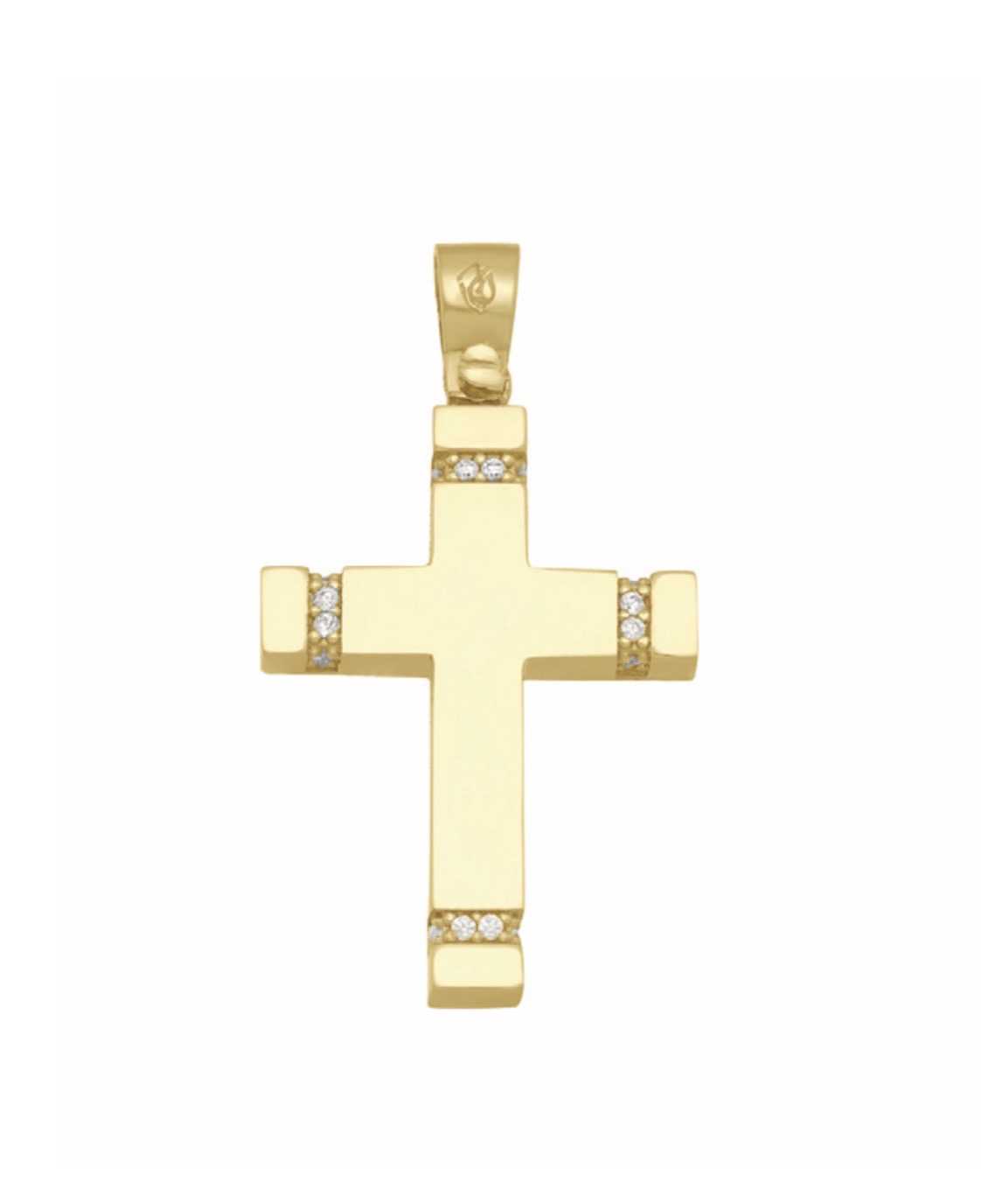 Σταυρός χρυσός 14 καρατίων με λουστρέ φινίρισμα διακοσμημένος με συνθετικές πέτρες